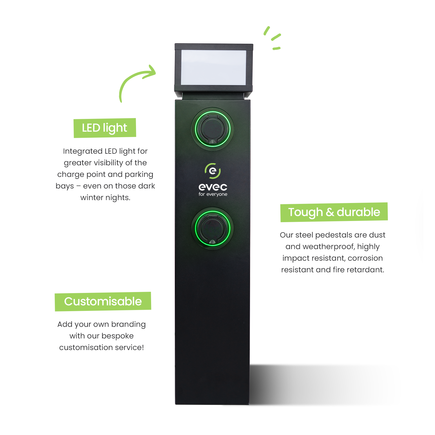 Alternately, the evec commercial floor-standing 22kWpedestal chargercould charge your Nissan Leaf in just 2 hours. The pedestal has an integrated LED to improve the visibility of the charge point and is also weatherproof, highly impact-resistant, corrosion-resistant, and fire retardant. With more businesses using these pedestals, EVs are becoming more accessible for everyone to enjoy.