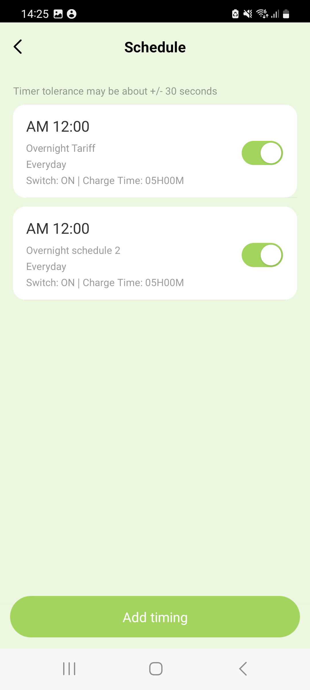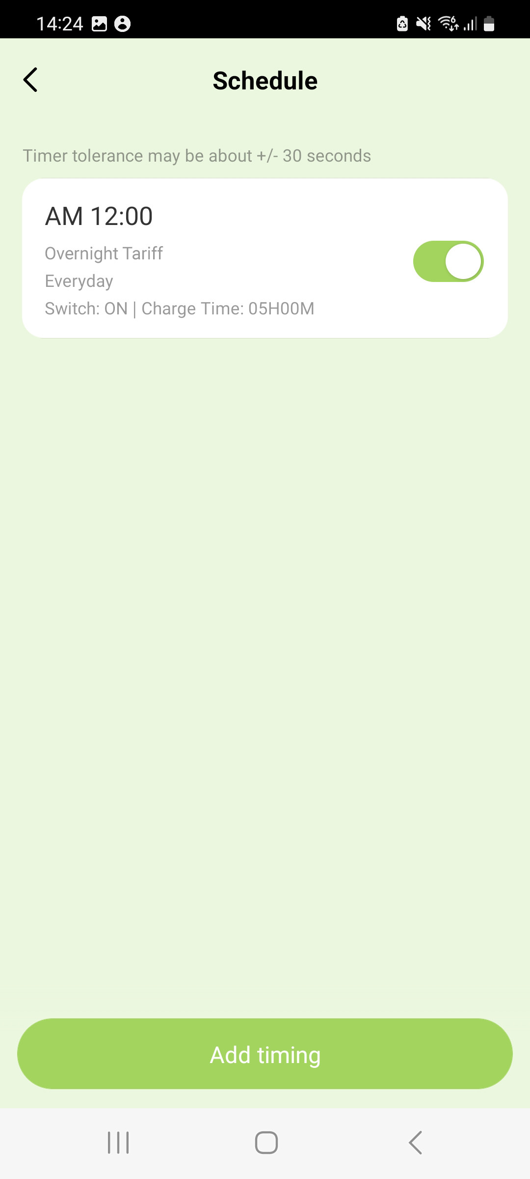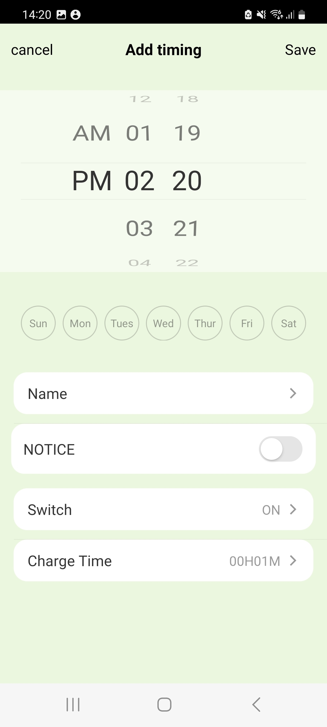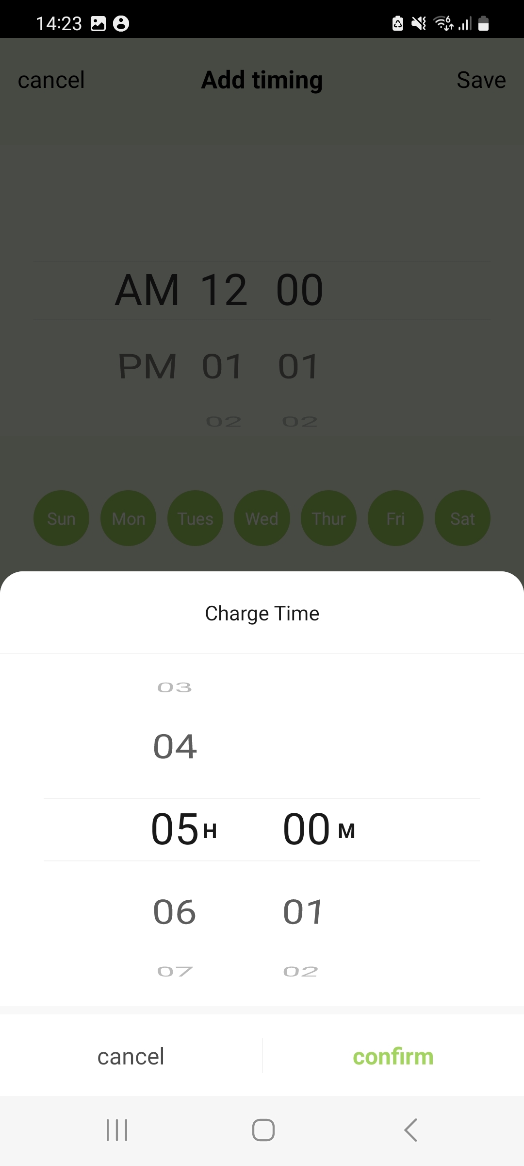 Step 4: Tap ‘Add Timing’ and set the details of your charging schedule: