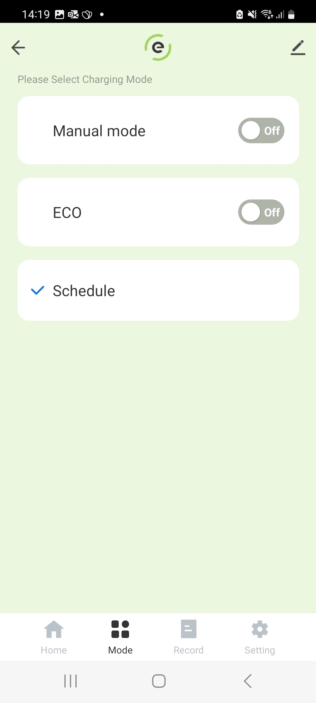 Switching to Manual Mode will pause any active schedules and start charging your car once it’s plugged in.