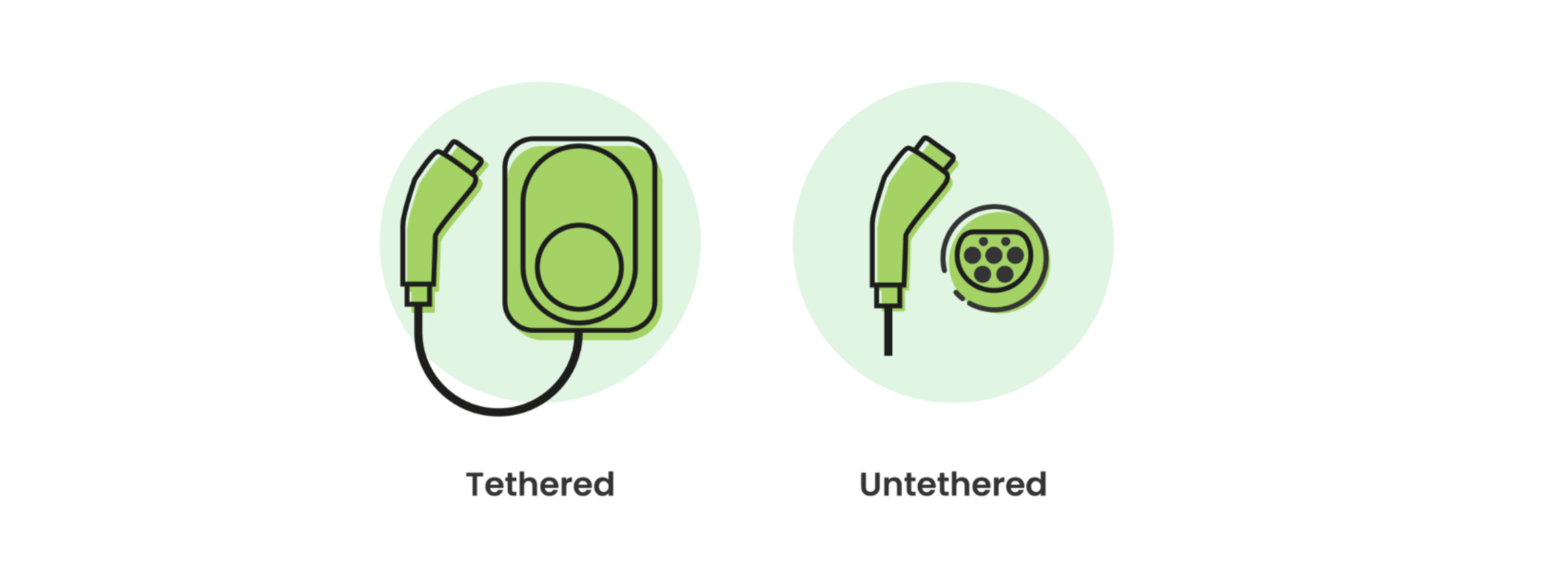 Tethered chargers have cables attached and can be a more convenient choice for home charging