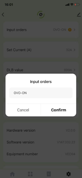 Once you've updated your app, go to the "settings" pages. On this page, you'll see an "input orders" tab. Click on this and, in capital letters, enter OVO-ON and press confirm.