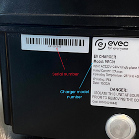Each charger has a unique serial number printed on the bottom. To be compatible with OVO Charge Anytime, your serial number needs to fall within this specific range: