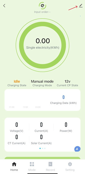 Open the evec app linked to your charger
